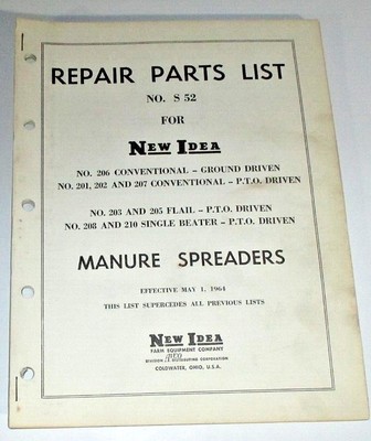 New Idea Manure Spreaders 201 202 203 205 206 207 208 210 S52 Repair Parts List Ebay